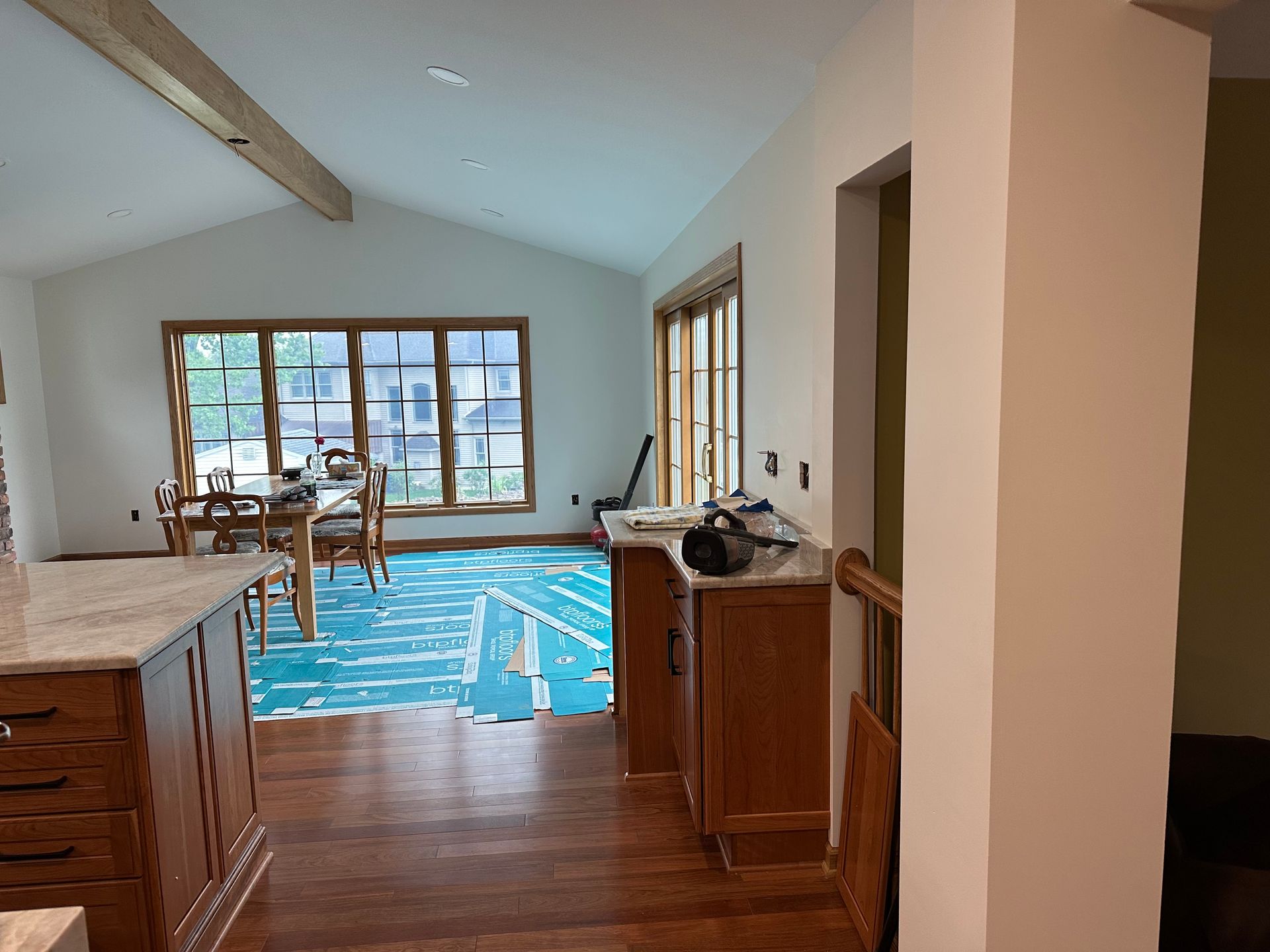 SEO-friendly caption: Whole home remodeling in Western New York — open kitchen, hardwood floors, and modernized living spaces throughout Niagara and Erie Counties.